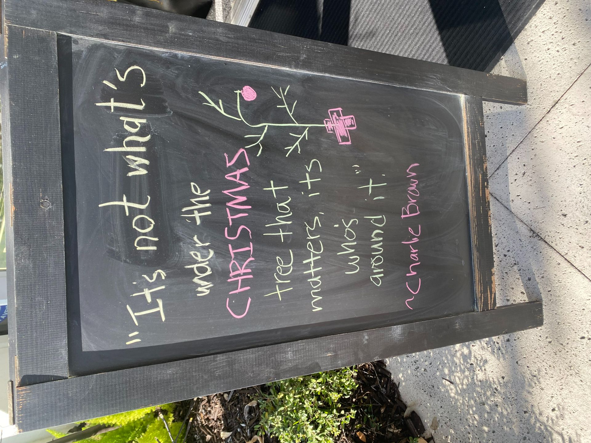 PS One of our familiar faces is away this Christmas and she sent me this sandwich board with an important message for the season.