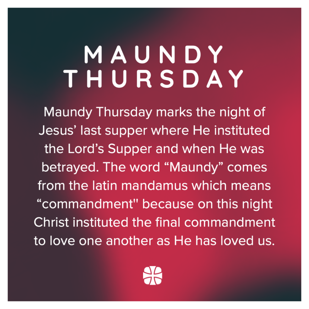 Welcome to Maundy Thursday. I know I will see many of you at 2 pm as we celebrate the wonderful life and ministry of Bob Watt. Later, we will gather downstairs in the Brick Hall for an intimate sharing of Jesus’ Last Supper, including a reflection from me, another from the Gunter and Torishnia families, and three selections of music by the Torishnia children.