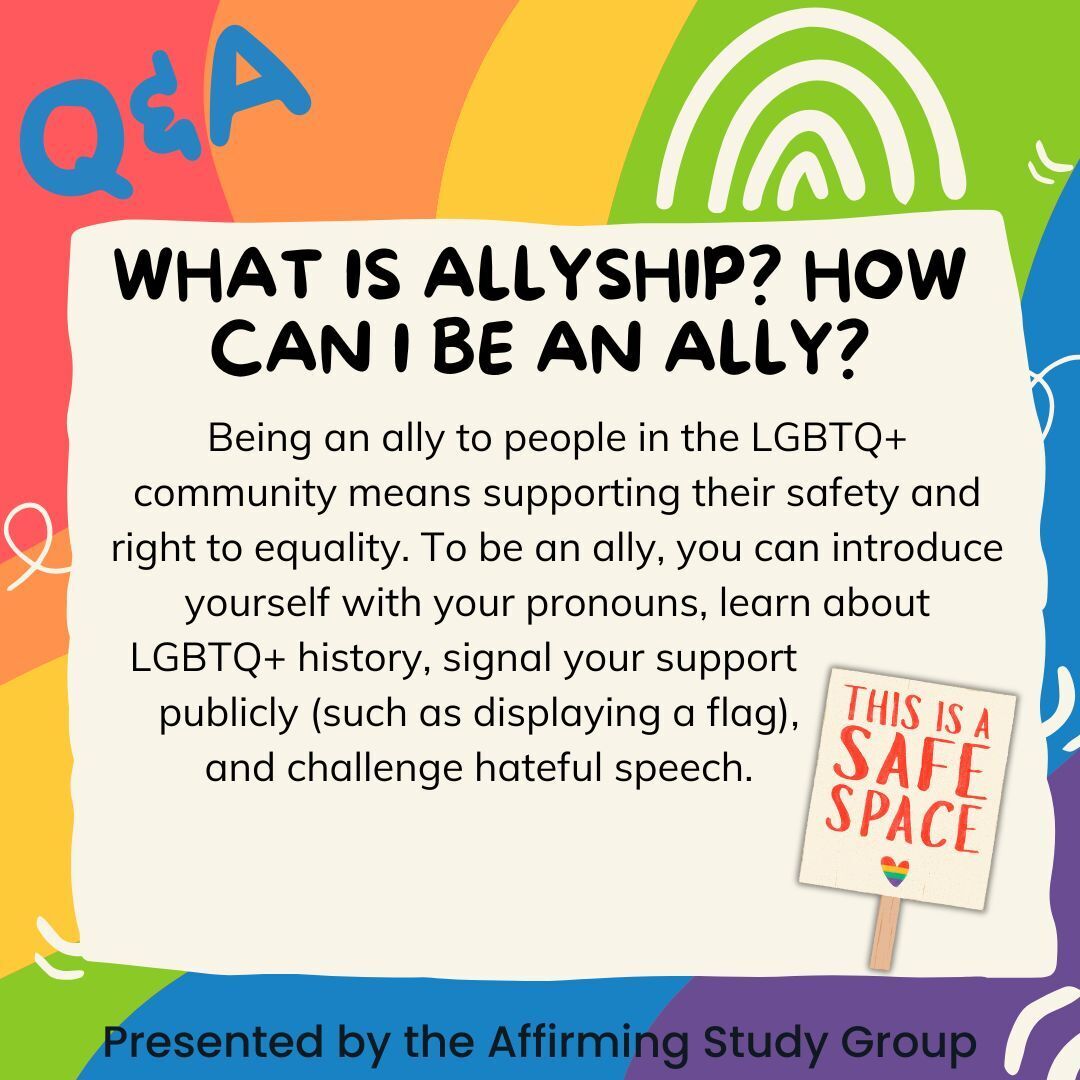Often when we think of allyship we imagine standing up for others if someone is offended or hurt, but what if we defined it as working together to bring joy and life to all people? It’s a “also/and” not an “either/or”, meaning as an ally I am called to stand with those who are being mistreated, correct misinformation, be humble, admit what I do not know, and seek better information. But celebrating our diverse population is also a part of allyship, in the same way we celebrate our rich diverse population in many traditional populations, we also want to do likewise with our 2SLGBTQIA+ populations. Allys can all do better.