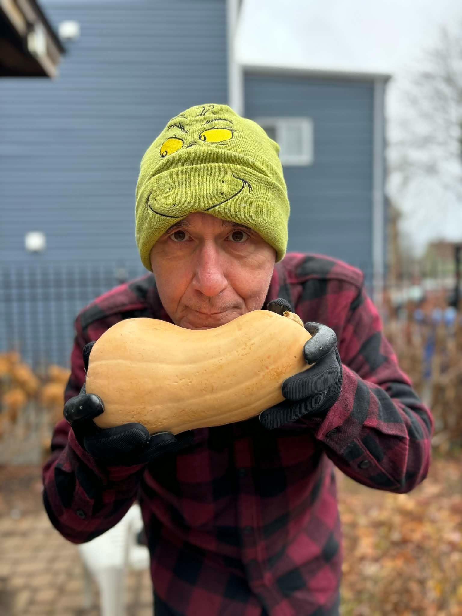 PS Today I was handing out hats, in addition to the coffee at Margaret’s House. There were also butternut squash and other vegetables given out. Photo 1) taken by Cathy Belanger. Photo 2) altered by my brother Scott.